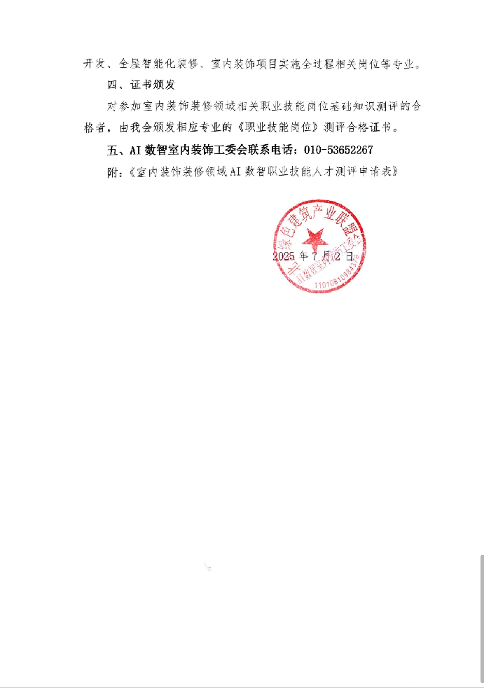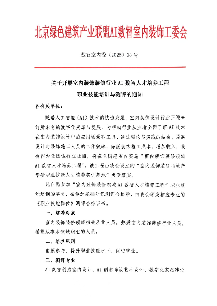 开展“室内装饰领域职业技能岗位人才测评”的通知