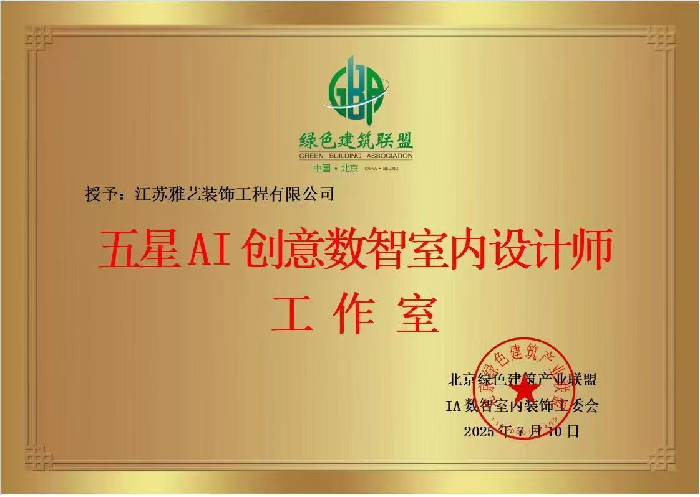 “五星AI创意数智室内设计师工作室”授权铜牌