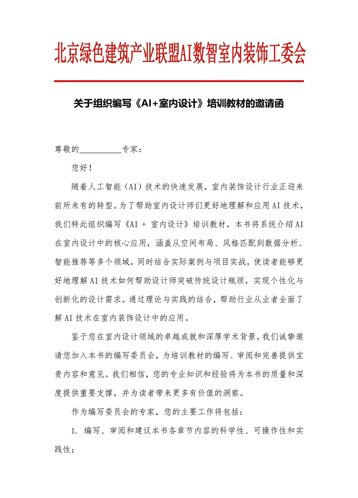编辑出版《AI+室内设计》教材邀请函